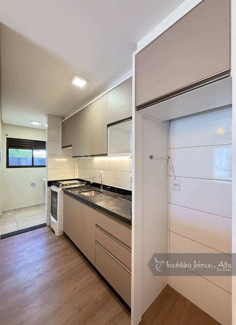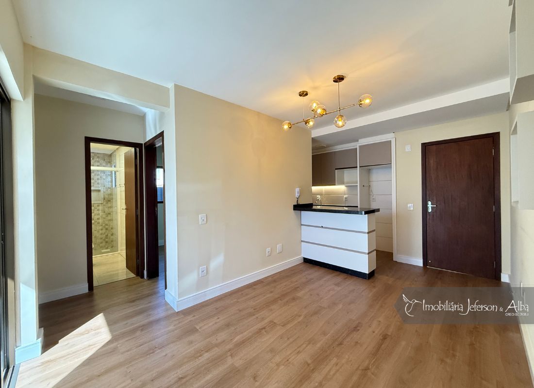 02Dormitórios, 01BWC, 01Cozinha/área de serviço, 01Sala estar, 01Sala jantar, 01Sacada com churrasqueira, 01Vaga de estacionamento.