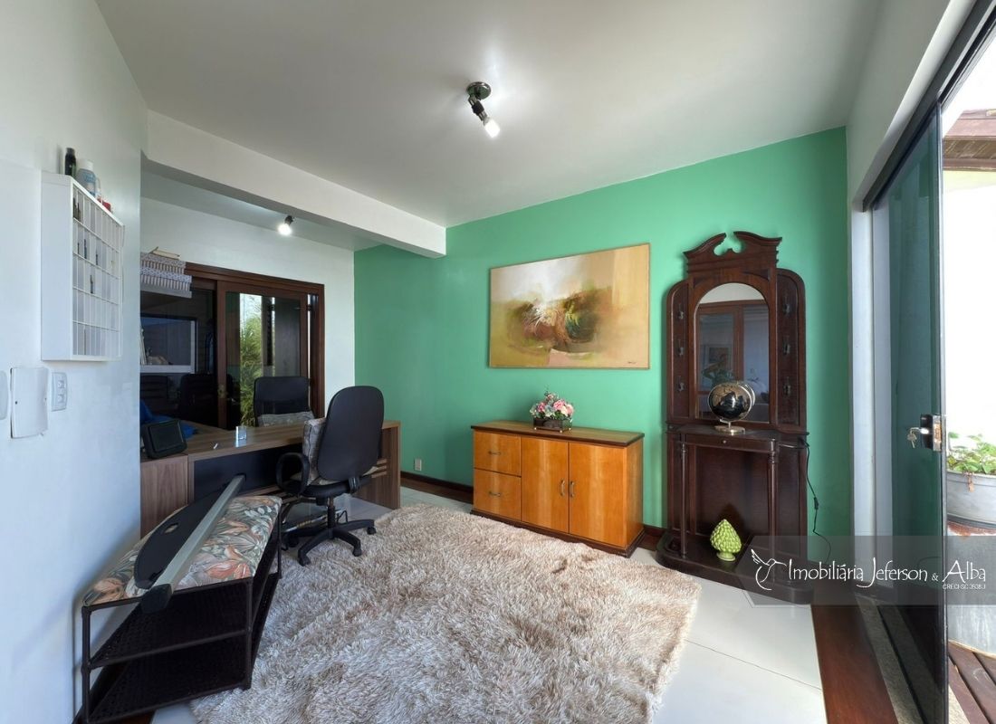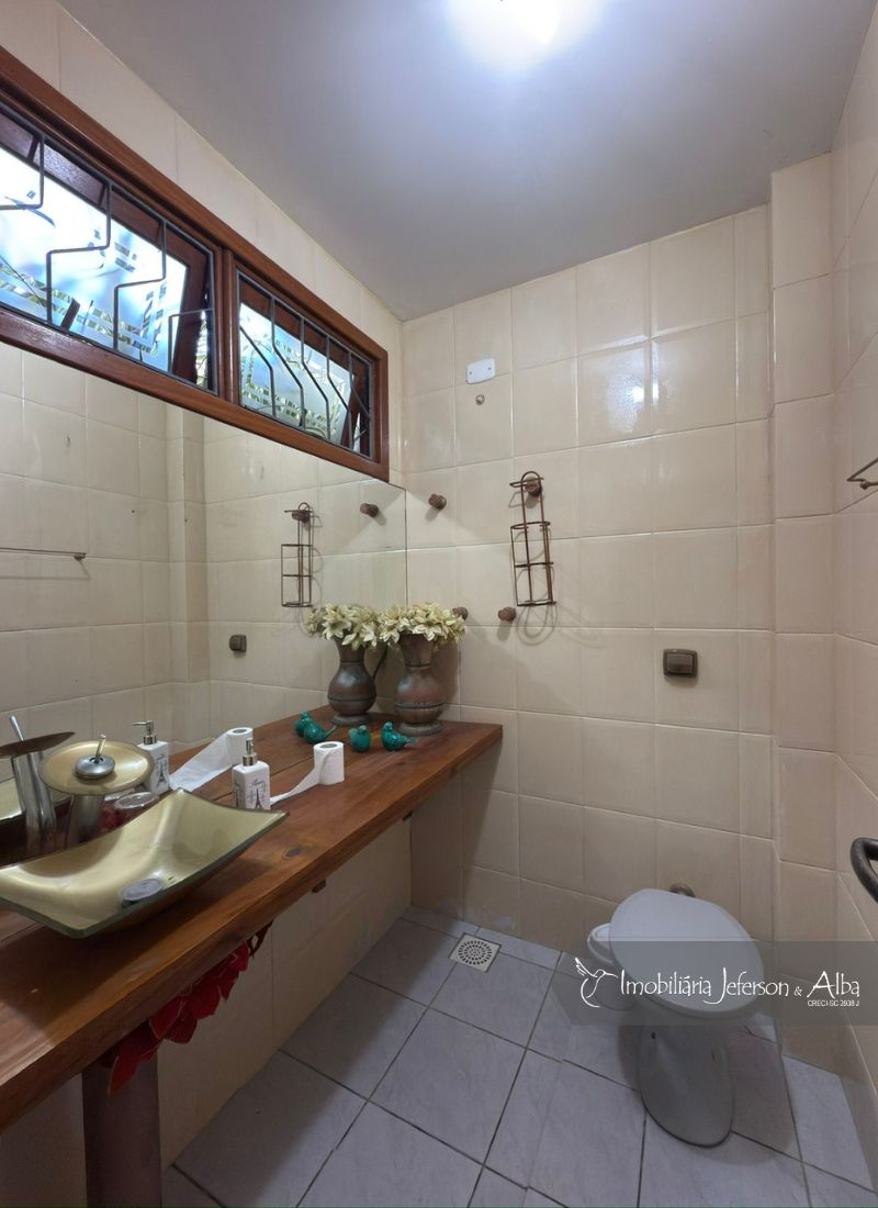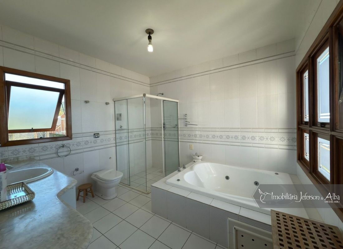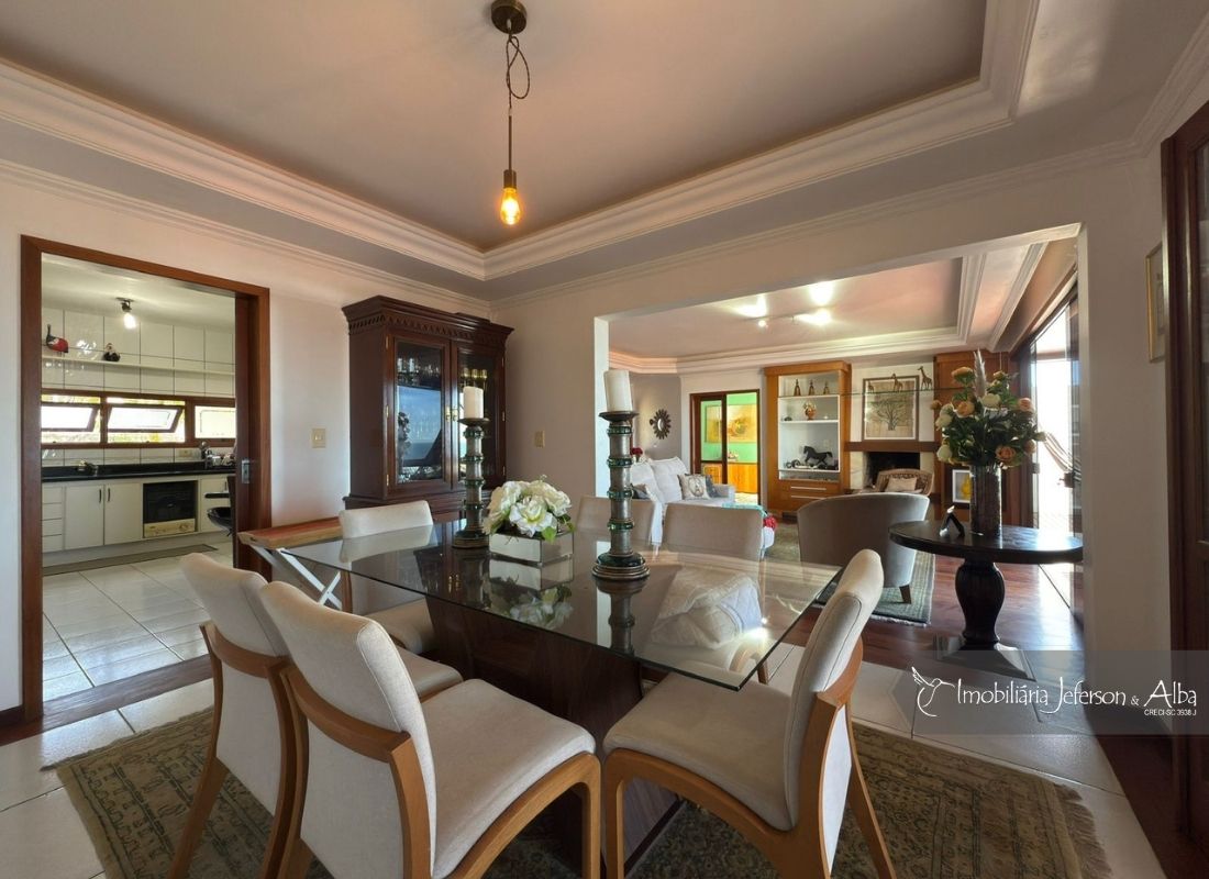 02Suites, 02Dormitórios, 01Closet, 01Sala Estar, 01Sala Jantar, 01Sala TV, 01Sala de Jogos, 01Lareira, 01Escritorio, 01Lavabo, 03Vagas de Garagem, 02BWC, 01Cozinha, 01Área Serviço, 01Churrasqueira, 03Sacadas, 01Banheira Hidromassagem, Jardim, Portão Automatizado, Aquecedor Solar, Interfone.