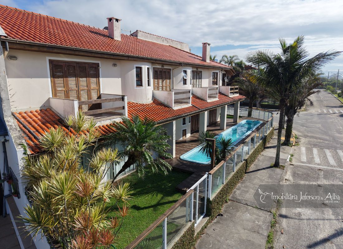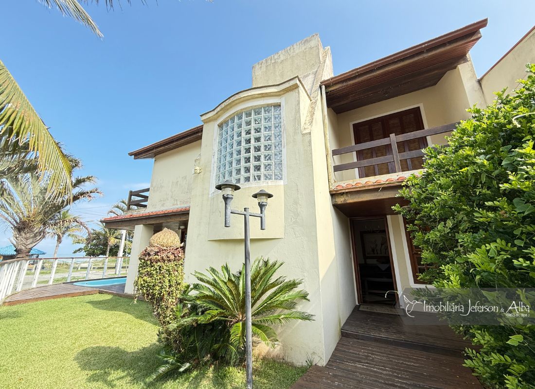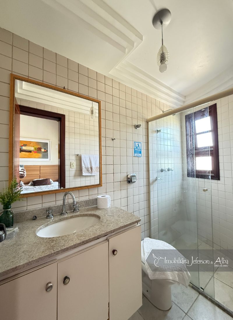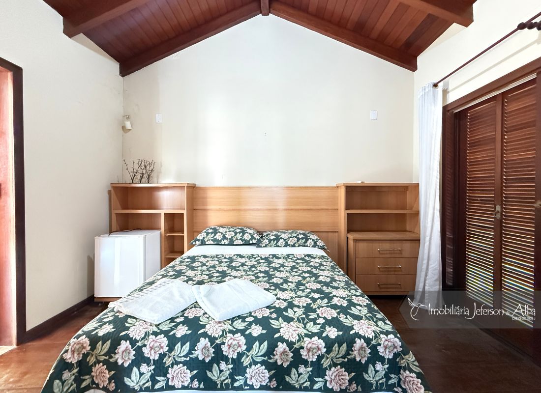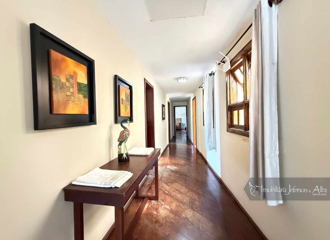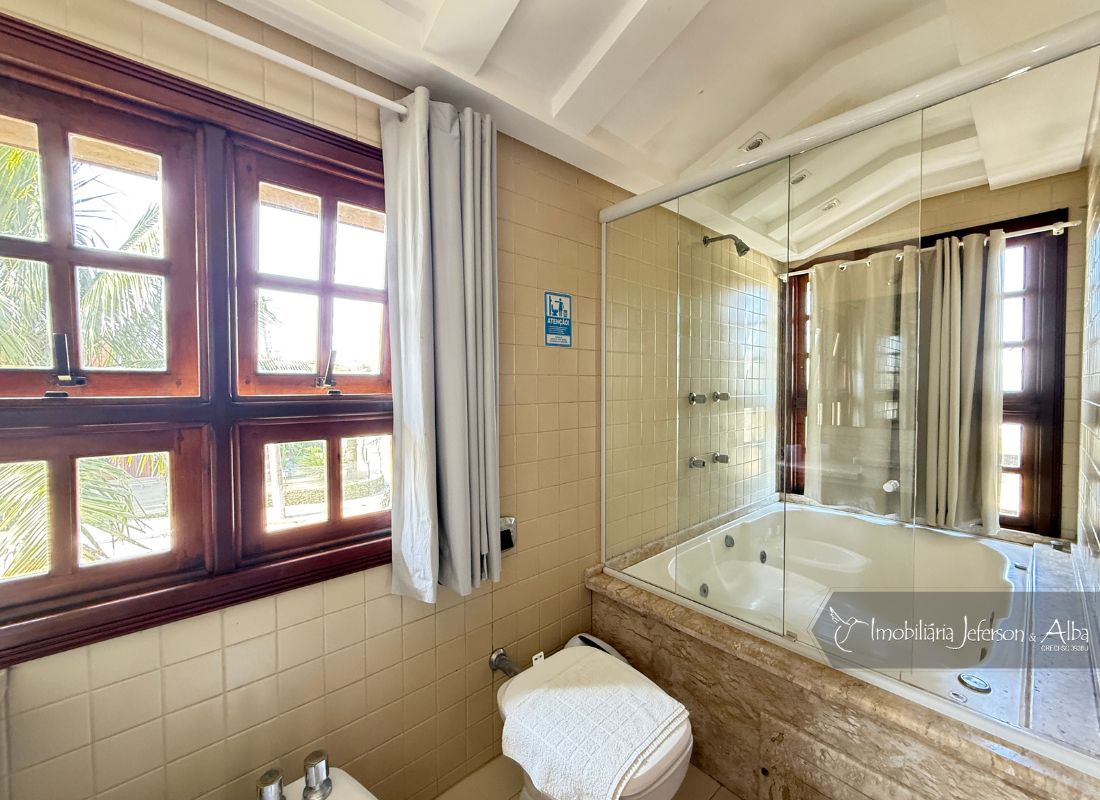 06 suítes c/ banheiras de hidromassagem (sendo 4 suítes c/ sacadas vista mar, 01 suíte c/ sacada vista lateral, 01 suíte c/ sacada vista fundo), camas box (2 x 2), ares condicionados, aquecedor de passagem, 01 living, 01sala TV, 01sala de jantar, 01lareira, 01lavanderia, 02depositos, 01cozinha, 01 churrasqueira, 03 vagas de garagem cobertas, 01lavabo, 01BWC social, 01piscina 15,00m x 2,00m x 1,20 profundidade.