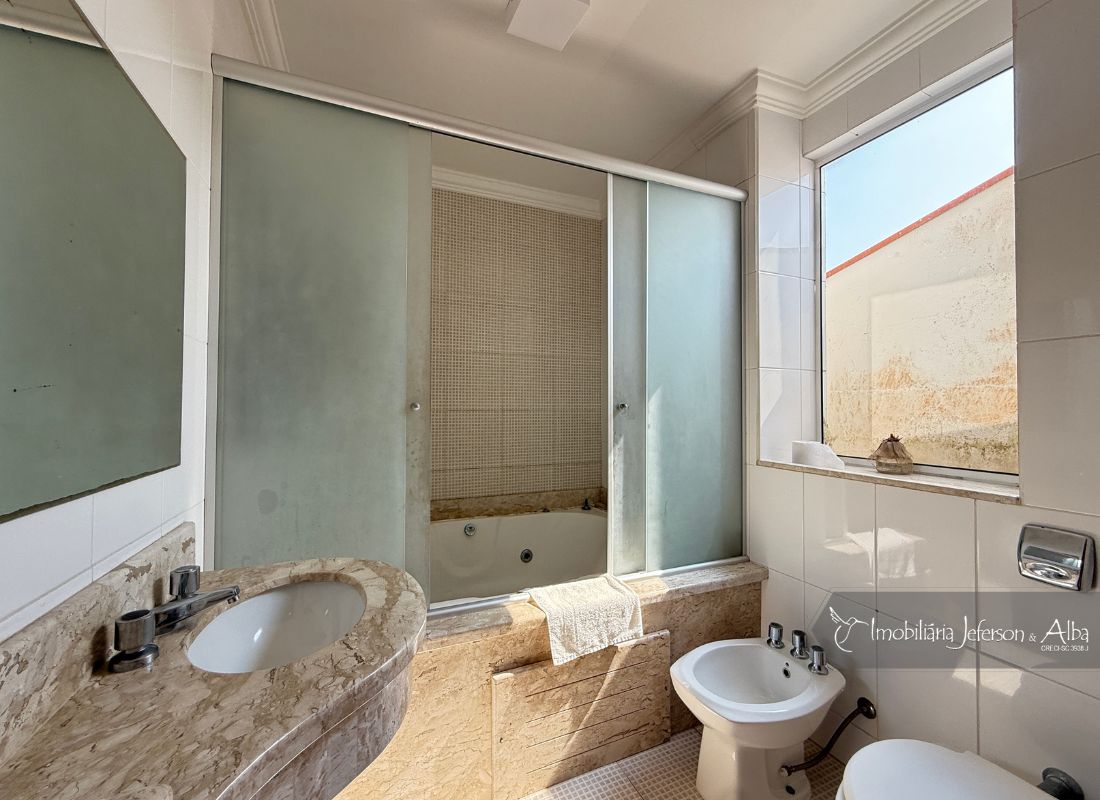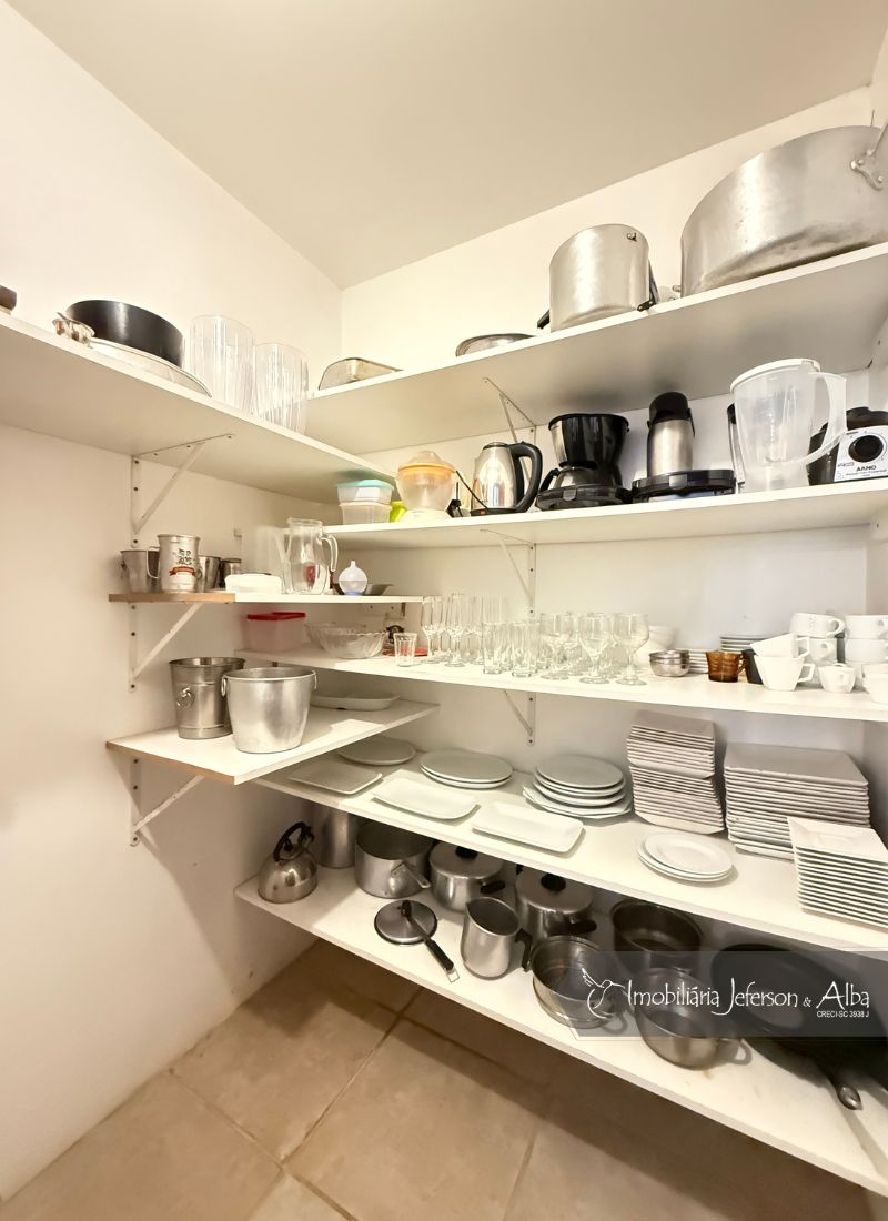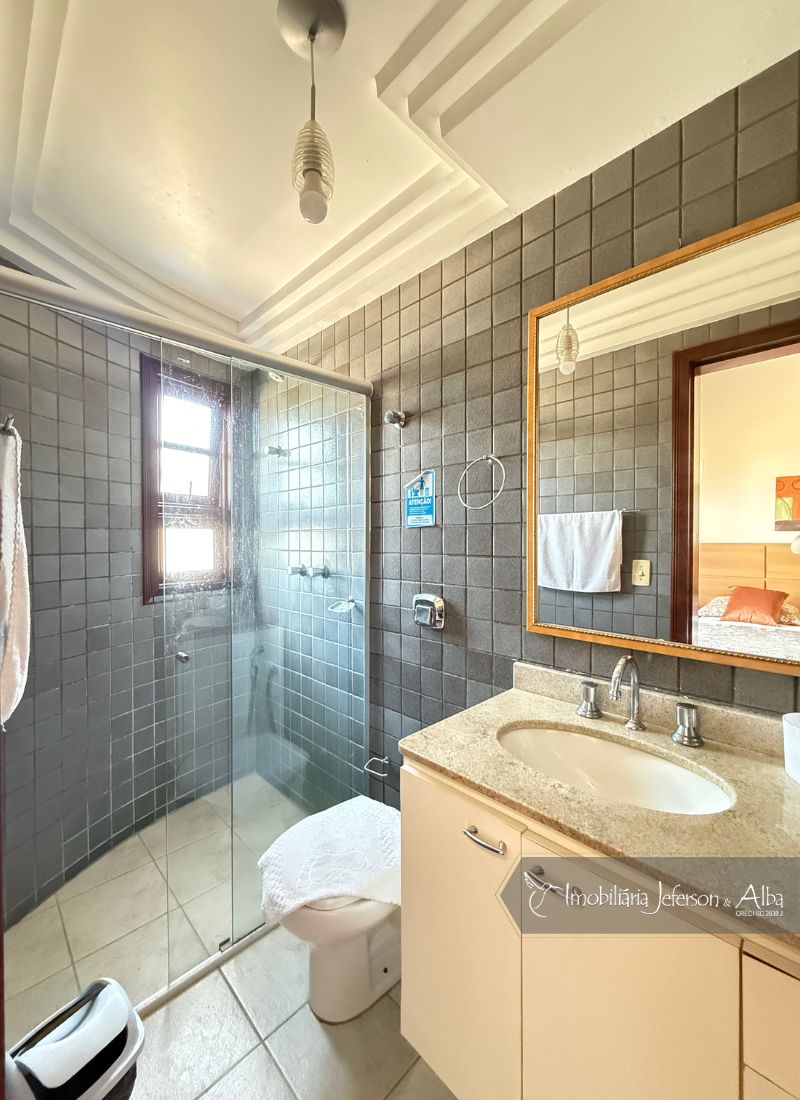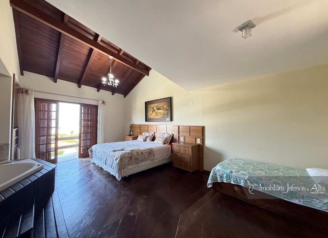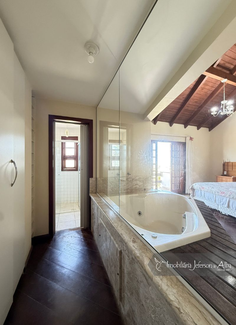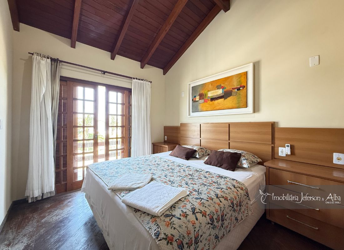 06 suítes c/ banheiras de hidromassagem (sendo 4 suítes c/ sacadas vista mar, 01 suíte c/ sacada vista lateral, 01 suíte c/ sacada vista fundo), camas box (2 x 2), ares condicionados, aquecedor de passagem, 01 living, 01sala TV, 01sala de jantar, 01lareira, 01lavanderia, 02depositos, 01cozinha, 01 churrasqueira, 03 vagas de garagem cobertas, 01lavabo, 01BWC social, 01piscina 15,00m x 2,00m x 1,20 profundidade.