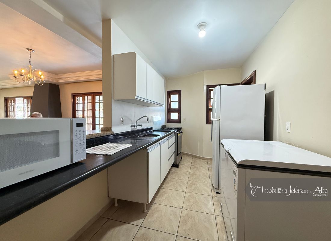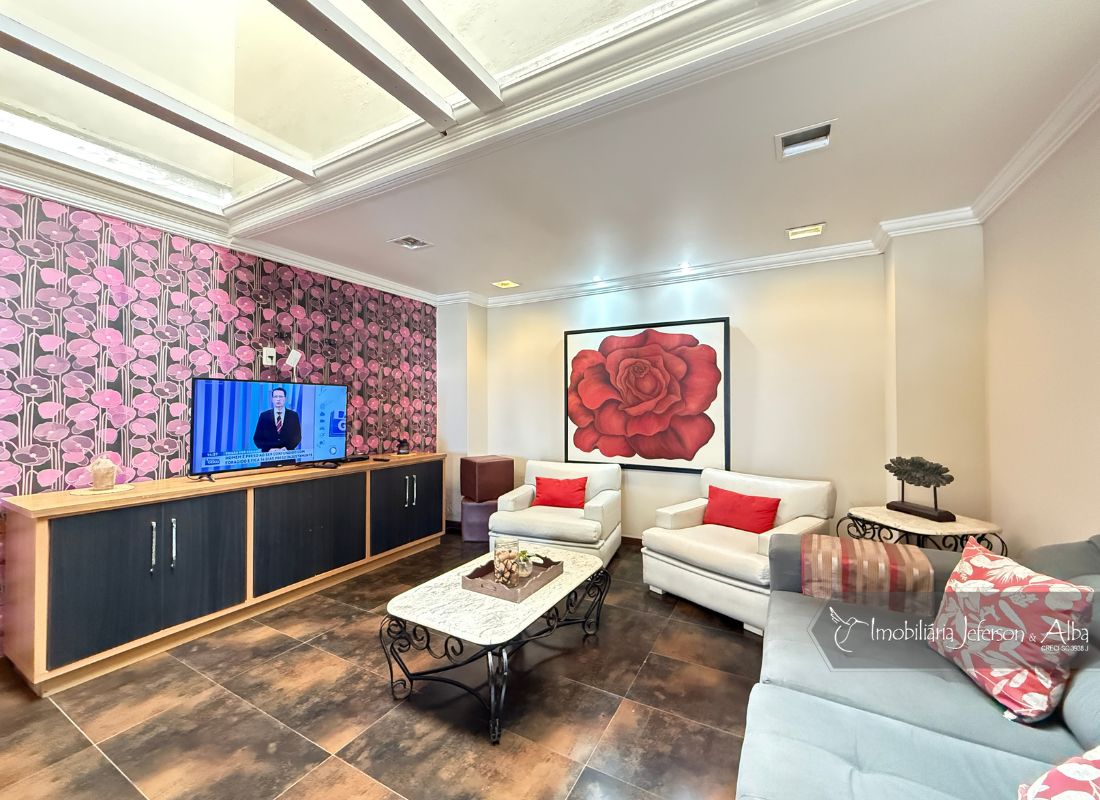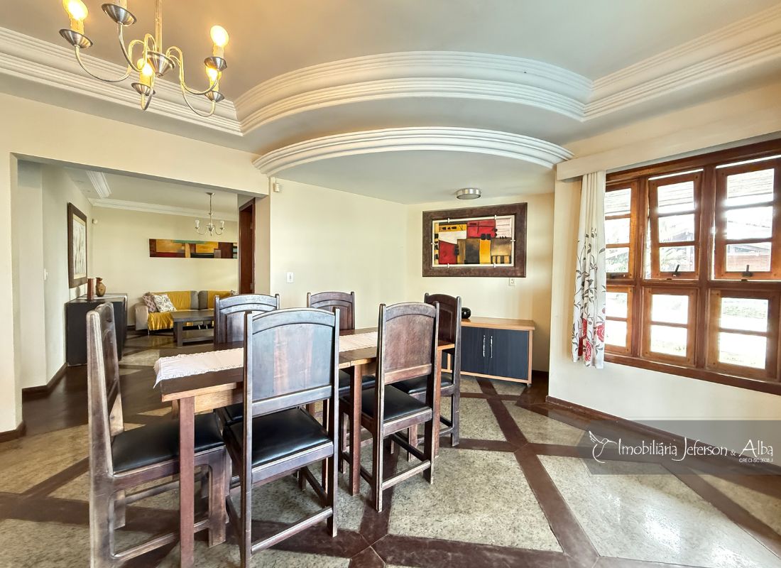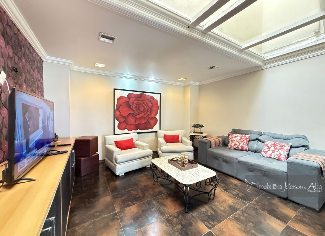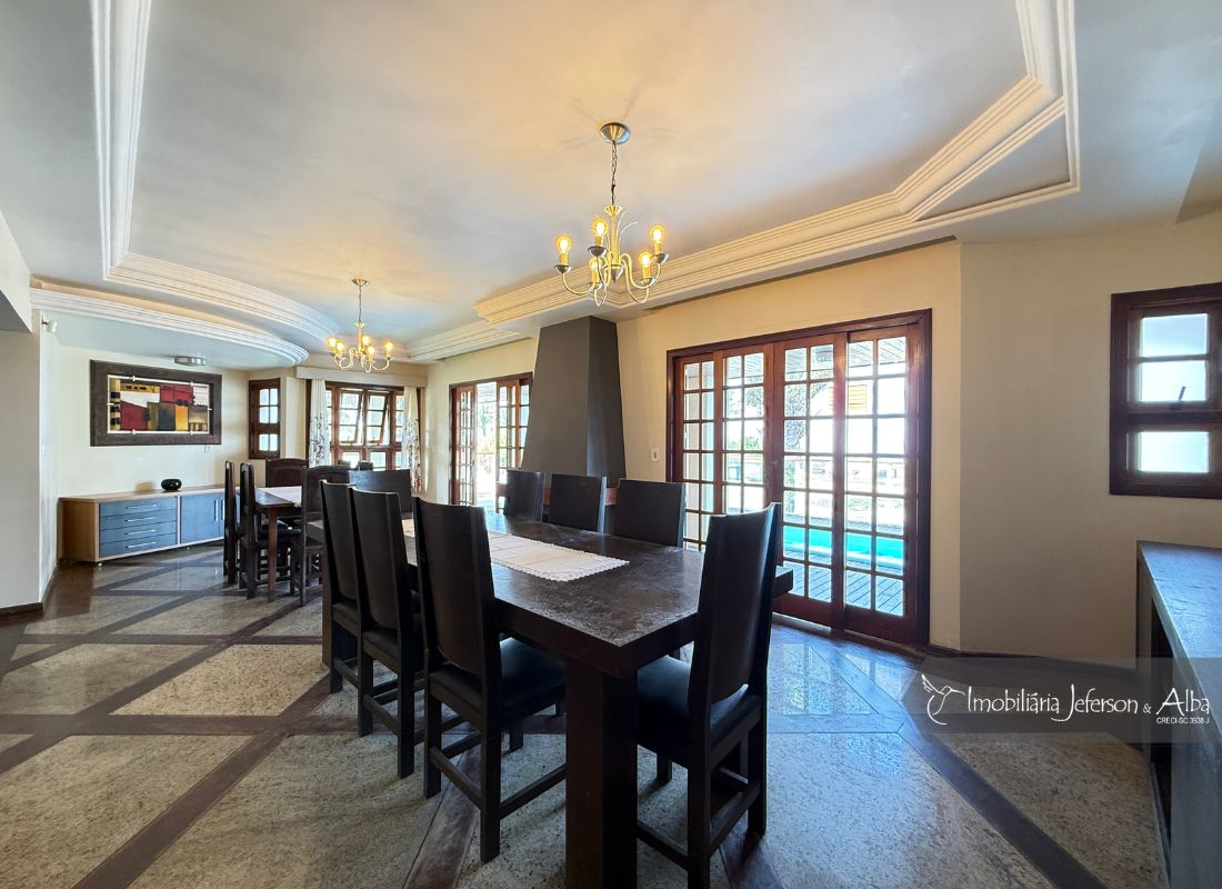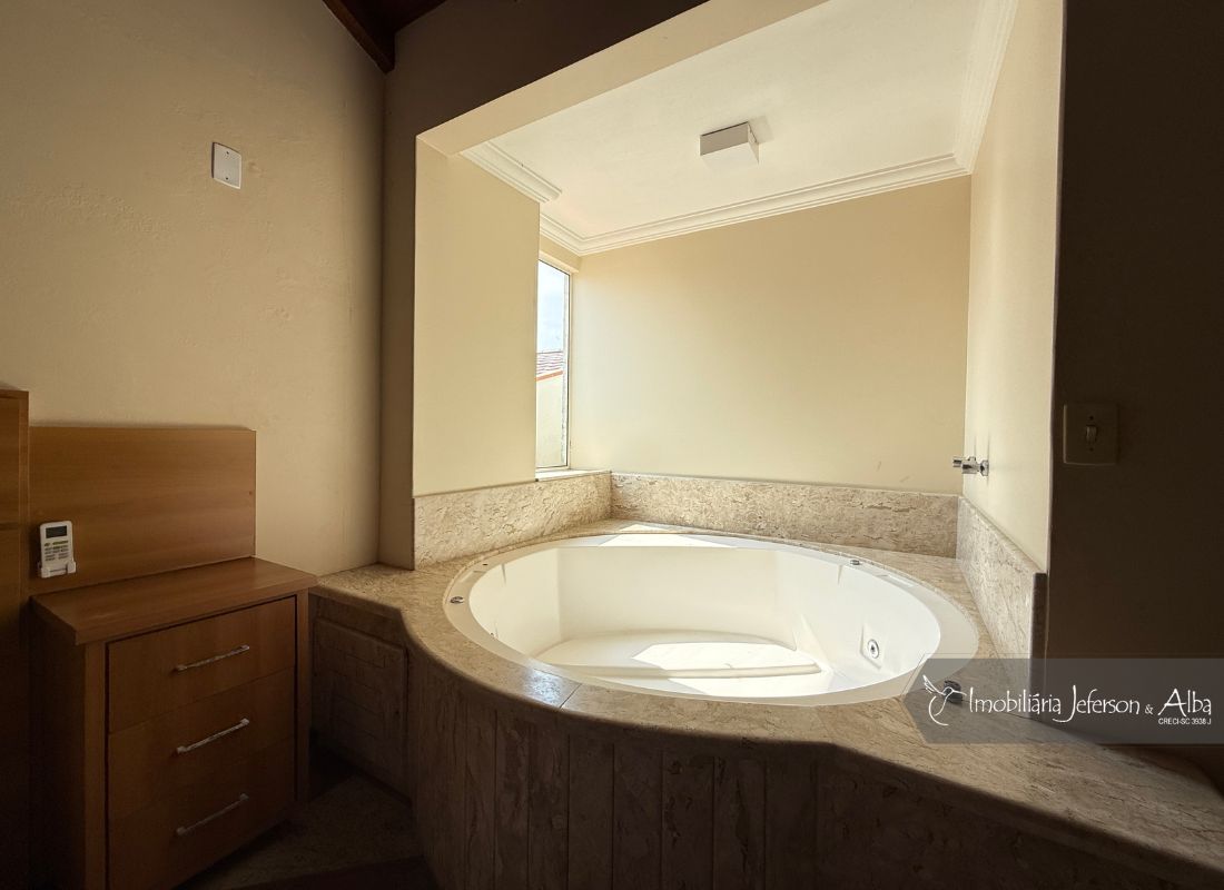 06 suítes c/ banheiras de hidromassagem (sendo 4 suítes c/ sacadas vista mar, 01 suíte c/ sacada vista lateral, 01 suíte c/ sacada vista fundo), camas box (2 x 2), ares condicionados, aquecedor de passagem, 01 living, 01sala TV, 01sala de jantar, 01lareira, 01lavanderia, 02depositos, 01cozinha, 01 churrasqueira, 03 vagas de garagem cobertas, 01lavabo, 01BWC social, 01piscina 15,00m x 2,00m x 1,20 profundidade.